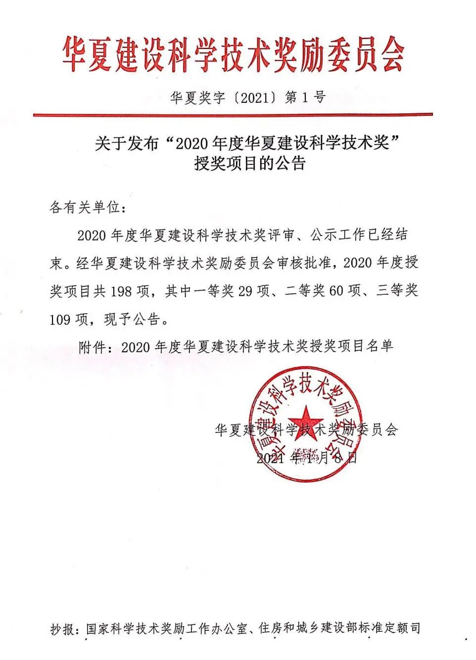 “2020年度華夏建設(shè)科學(xué)技術(shù)獎(jiǎng)”授獎(jiǎng)公告。