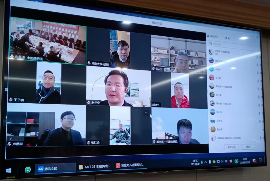2024年1月19日,由中國建研院主編,中建研科技承擔主要編制工作的國家標準《預應力孔道灌漿材料(送審稿)》(以下簡稱《標準》)審查會在京順利召開。