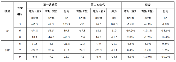 同時可以從表格中看出,若采用全樓統一的連梁剛度折減系數,則將導致連梁及相鄰剪力墻的內力與實際受力狀態明顯不符,影響混凝土結構的安全性與經濟性。
