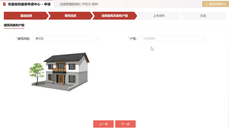 農戶在該系統上可進行建房申請,系統數據可對接國土空間規劃一張圖,確保宅基地申請符合村莊規劃。同時,可選擇符合當地建筑風貌的特色戶型,帶圖申請宅基地,并支持VR看房選房。