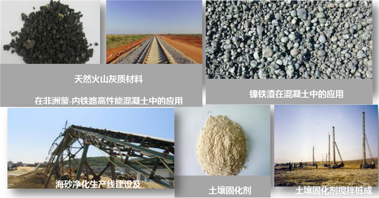 高效利用地域性材料資源和當地工、礦業副產物,采用化學激發、復合改性等技術措施,開發混凝土摻合料,制備綠色高性能混凝土。采用復合礦物設計+化學激發技術制備具有特殊用途、高性價比的新型膠凝材料體系,可用于軟土加固、礦井充填、巖土注漿、防滲芯墻等。